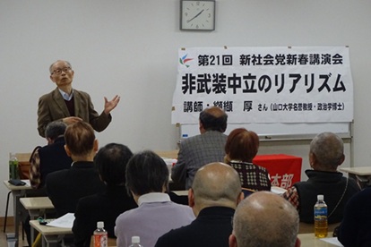 ![]() ◆憲法を壊すな!・・・呼びかけよう拡げよう 党声明 第51回総選挙は2月8日投開票が行われ、自民党が改憲発議が出来る3分の2を超える316議席を獲得しました。しかし、高市首相に白紙委任をしたわけではありません。憲法改悪をさせない、これからが正念場です。 高い支持率を背景に、高市首相が自身への「選択」を迫った総選挙が終わった。首相自身に関わる統一教会との関係や裏金問題への追及から逃げ切りを図った、身勝手極まりない解散だった。 「国論を二分する大胆な政策の推進」には信任が必要とし、さらに、与党が安定多数を確保すれば、間接的に国民が総理大臣を選んだことになるとも述べ、事実上の〝白紙委任〟を求めた。議会制民主主義の土台すら否定するものだ。 「よく分からないが、何か変えてくれそう」と、ふわりとした高市支持によって自民党は単独で改憲発議できる3分の2超の議席を獲得した。野党第一党の中道改革連合は、選挙のための合流を見透かされた。候補者も混乱したまま、与党との違いは見えず惨敗した。与党の日本維新の会、参政党や国民民主党は一定の議席を確保し、チームみらいは躍進した。 新社会党が支援した社会民主党は議席を獲得できなかった。昨年末から憲法を軸に連携している日本共産党も後退した。 首相はほとんど語らなかったが、維新との合意から次の提案が予測される。 ①安保三文書改定の前倒し、②スパイ防止法創設、③武器輸出の完全解禁、兵器工場の国営化、④国旗損壊罪創設、そして改憲案の国会提出などだ。旧姓使用の法制化や非核三原則見直しもある。 我々が急いで取り掛からなければならないことは、昨年末から模索が始まった日本共産党、社会民主党、新社会党、沖縄の風による、憲法を軸に「戦争させない」「一人ひとりの暮らしや権利を守ることができる」社会をつくるためのブレない連帯を地域に拡げることだ。 立憲野党共闘の再構築も念頭に、歴史の逆戻りを許さない人々と共に声をあげよう。立ちすくんでいる時ではない。 2026年2月9日 新社会党 ◆いまこそ「非武装中立政策」を・・・戦争に向かう危機を阻むために 1月25日、新社会党神奈川県本部「新春講演会」が纐纈敦(こうけつあつし)さんを迎えて開かれました。まさに高市総理が19日に解散表明を受けての開催となりました。2014年7月に集団的自衛権行使の閣議決定以降、「安保三文書」の閣議決定(2022.12)、防衛装備移転三原則の見直し(2023.12)、防衛力の抜本的強化に関する有識者会議→原子力潜水艦の導入を提案、武器輸出の見直し(2025.9)と「戦争のできる国」へつき進んでいます。 自維政権合意では、軍事費のかなりが長距離射程ミサイルなど、敵基地攻撃能力整備、原子力潜水艦建造などに費やされます。26年度予算案では軍事費9兆円超のうち敵基地攻撃能力だけで1兆円超を占めています。 私達の納めた税金は、こうして軍事産業の懐に入り大儲けをもたらしています。軍事産業のトップ三菱重工の株価はここ数年、上場以来の最高値を更新しています。上市政権は、軍事産業育成のため多額の補助金を出して「国営工廠」建設も推進しています。武器への需要は自衛隊だけではなく足りず、海外に売り込むべく「武器輸出」を規制する「5類型」の撤廃が政権合意に明記されたの です。 抑止論としての武力が必要とする意見があります。日本が攻撃された場合どうするのか?という意見です。しかし、どこの国が何を目的に日本を攻撃するのでしょうか。理由が見つかりません。日本を守るためとして南西諸島等にミサイルを配備すれば、それは相手国にとっては脅威となります。まさに軍備拡大が戦争を呼び込むのです。戦争で犠牲になるのは市民です。ウクライナやガザでの現実がそれを示しています。平和憲法のもとですすめてきた平和外交の努力を継続すべきです。 ◆八方ふさがりの現実・・・原発やめて自然エネに 原発の最大活用を内容とするエネルギー政策の閣議決定、中国・関西電力による中間貯蔵施設建設(山口県上関町)の「適地」表明、東京電力柏崎原発と北海道電力泊原発再稼働への地元知事の容認表明など、2025年は日本のエネルギー政策の転換点となりました。東電福島第一原発の過酷事故から15年目を迎えますが原子力非常事態宣言は解除の見通しすら立っていません。廃炉作業は、燃料デブリの除去のメドどころか手がかりすらつかめていません。にもかかわらず、原発を動かす資格のない東電は柏崎刈羽6号機の再稼働へ動き出しています。 福島事故被災者への補償も不十分・不誠実な東電が、再稼働すれば火力の発電を減らし、浮いた費用1000億円を新潟県に10年間で支給するというのです。カネで再稼働を買う振る舞いには、企業倫理のかけらもありません。容認した新潟県の花角知事は、再稼働問題について「県民の信を問う」などと言い、本心を隠してきました。最後は再稼働歓迎の自民党議員が圧倒的多数を占める「県議会の意向